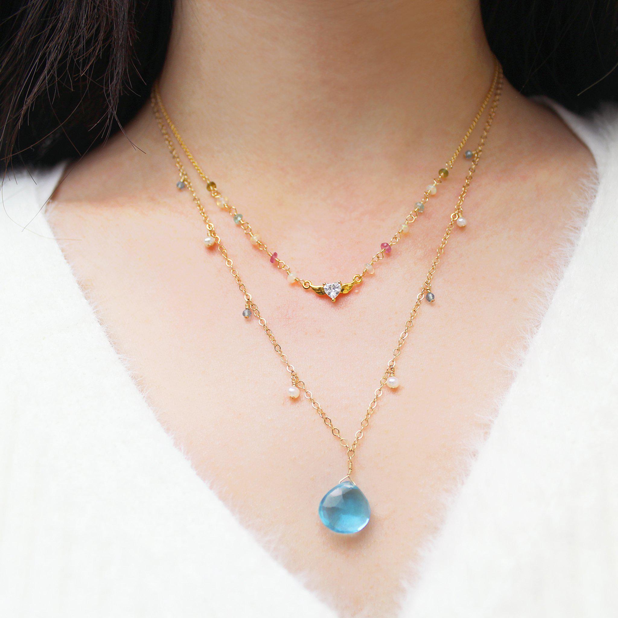 The necklace is up to 16 inches, with adjustable sliding bead.
